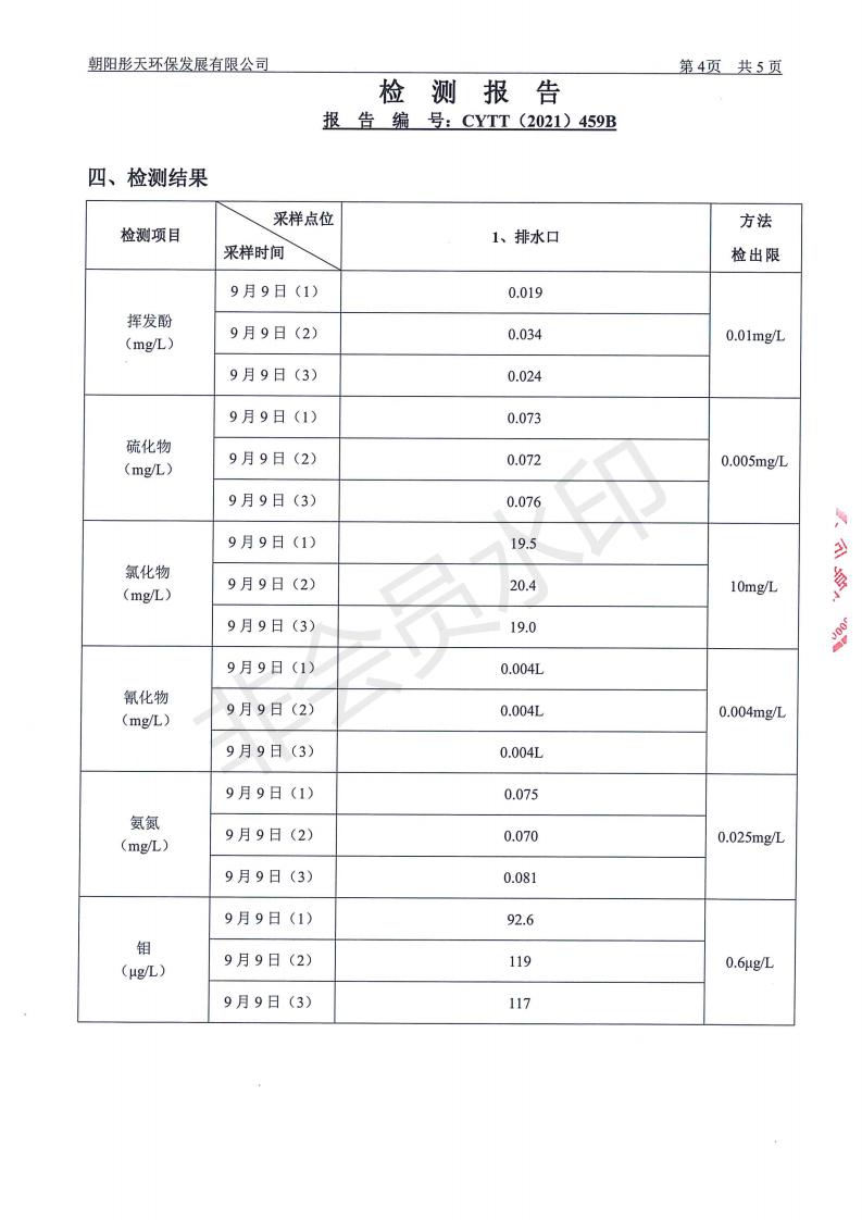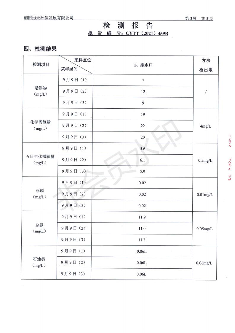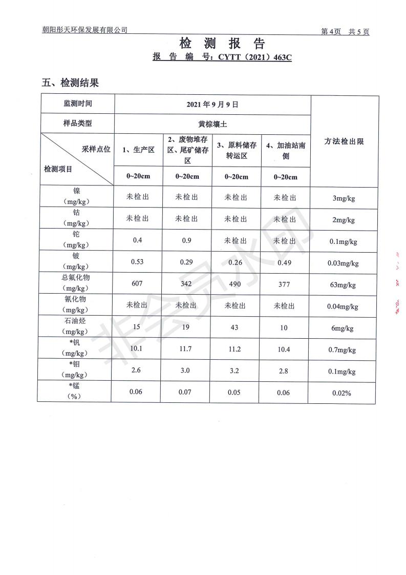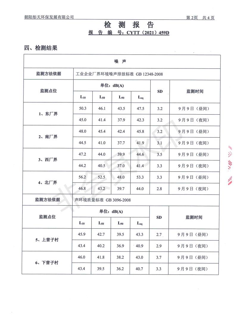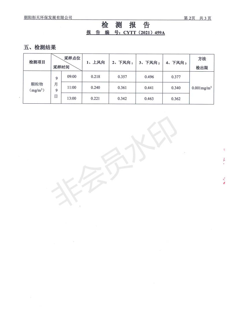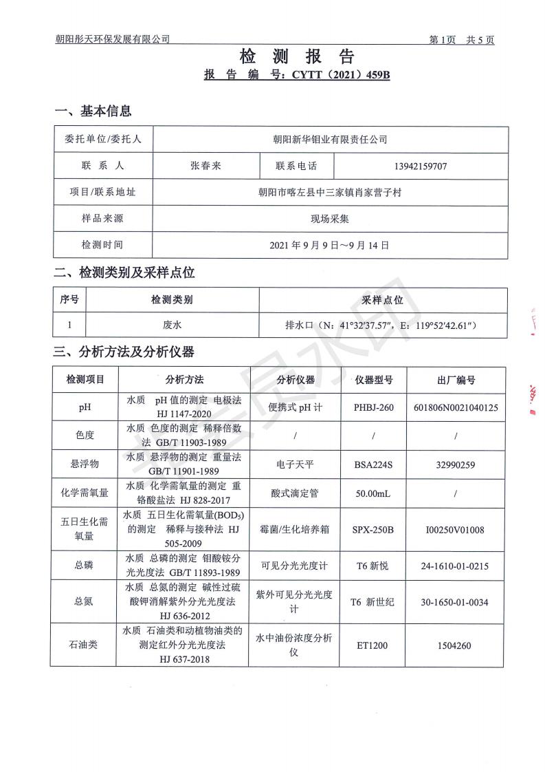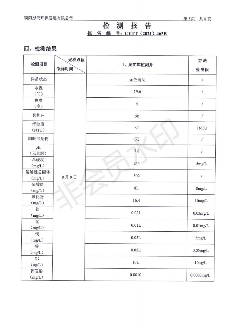 按照《环境检测方案》的相关要求,我公司2021年三季度委托朝阳彤天环保发展有限公司按相关规范对矿区内水、废水、噪声、环境空气和废气进行了检测,现将检测结果发布予以公示。