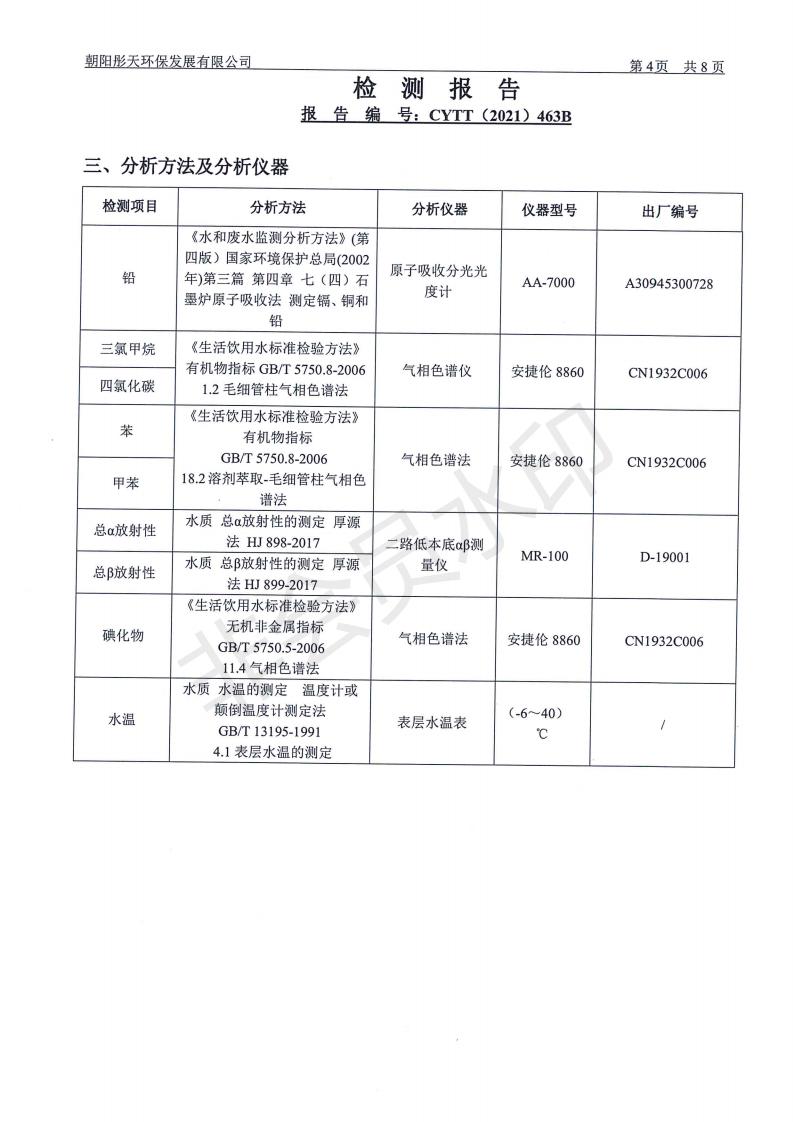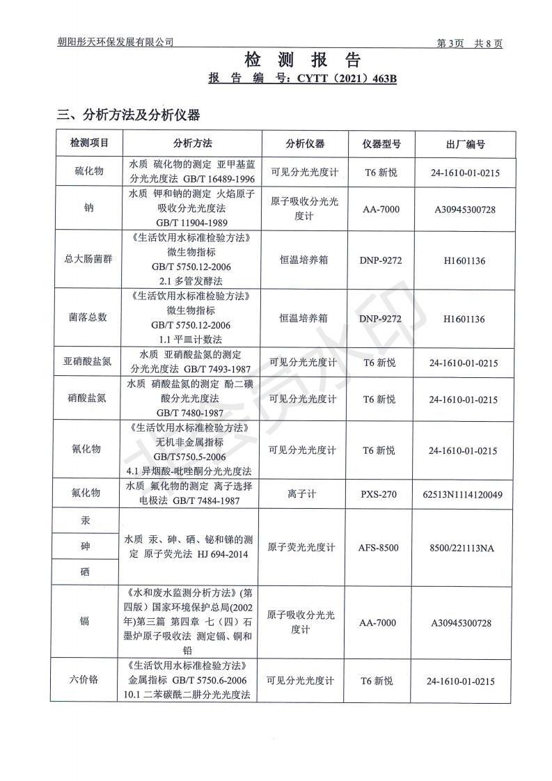 三、矿区内地下水检测结果公示