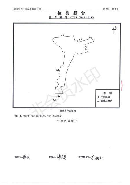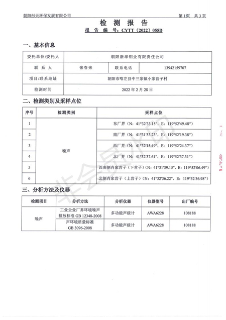 按照《环境检测方案》的相关要求,我公司2021年四季度委托朝阳彤天环保发展有限公司按相关规范对矿区噪声进行了检测,现将检测结果发布予以公示。