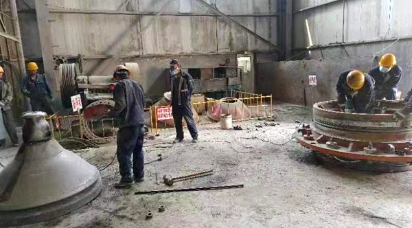 选厂经过两个多月的使用,惯性圆锥破碎机衬板已达到使用周期的最末期。同时减震器也需要更换。选矿厂按计划组织人员对其进行了检修。由于更换圆锥破碎机衬板和减震器需要8个人以上,而碎矿工段维修人员只有3人,因