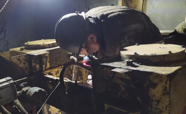 4月15日经夜班反馈,905作业地点铲运机底部有轻微漏油情况。设备队接到维修指令,立即出发。因不确定发生异常部位的具体状态,设备助力工程师丰富和维修师傅刘玉福先行坐第一班罐笼下井,去现场检查、确认具体